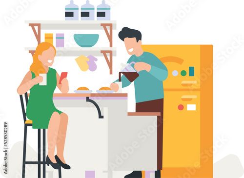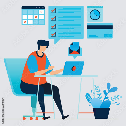 Girl chatting, posting photos, receiving comments on social networks sitting on the toilet, flat vector illustration. Smartphone and social media addiction poster template.