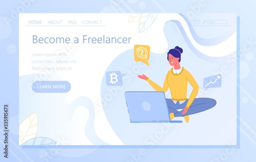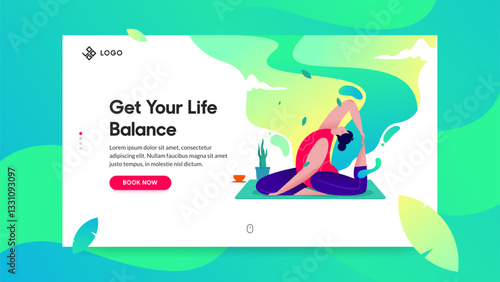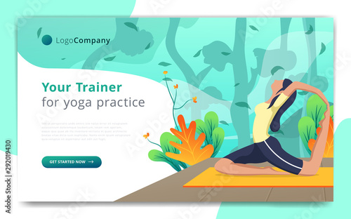Girl doing meditation and gyan mudra yoga with nature on background. Human enlightenment concept. Subtle energy, life balance. Vector web site design template. Landing page website illustration