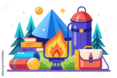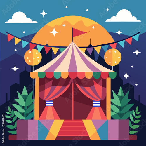 Girl drinks hot mulled wine in front of christmas market fair stall. New year traditional fair vector concept illustration. Russian holiday market stall with samovar. Web site design template.