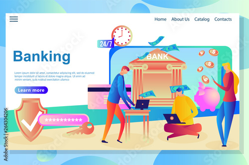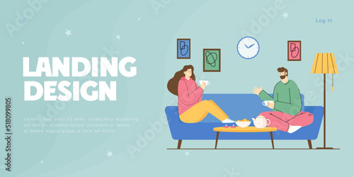 Girl reading news on digital gadget at home. Man at newsstand reading morning newspaper. Business news concept illustration. Vector web site design template. Landing page website illustration.