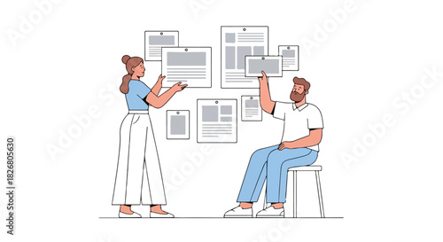 Girl tying on new clothes front of mirror vector illustration. Young woman flat cartoon character. Lady choose fashion cloth, girl shopper in new look. Fashion studio atelier room interior