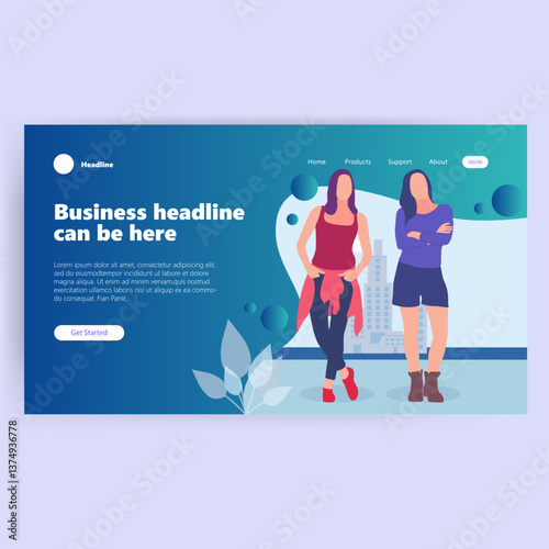 Girls soccer team vector website template, landing page design for website and mobile site development. Football winner girl team with gold trophy cup.