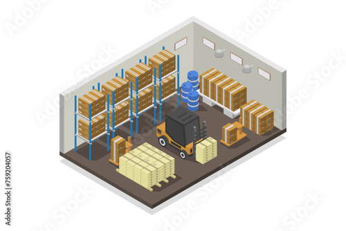 Glass waste recycling machine isometric vector. Garbage processing factory, conveyor system isolated on white background. Landfill technology