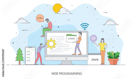 Global logistics and delivery concept. Warehouse workers, forklist, packages, storage. Vector web site design template. Landing page website illustration.