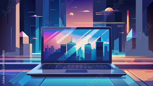 Gold price vector illustration in flat style. Stock chart on laptop screen. Pile of money, gold bars.