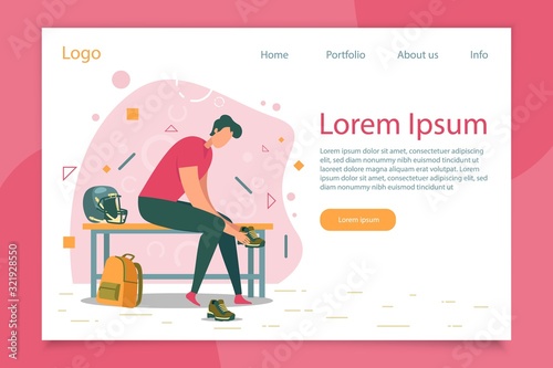 Golf landing page design, website banner templates, flat vector illustration. Senior bearded man playing golf. Elderly player practicing outdoor sport game with trainer. Active and healthy lifestyle.