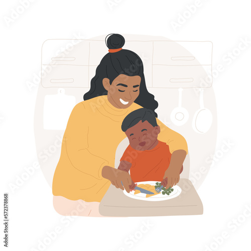 Happy grandfather cooking with granddaughter in kitchen, flat vector illustration. Grandpa and grandkid spending time together making burger. Grandparent and grandchild relationships.
