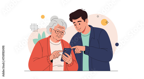 Grandmother playing with infant grandson vector icon isolated on white background