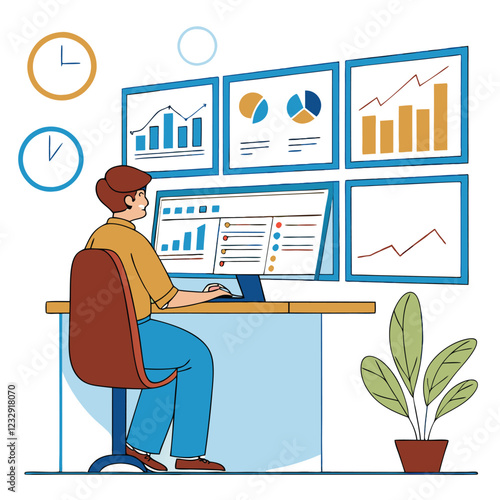 Graphic designer creating his own font using computer software sitting at desk, vector flat isometric illustration. Digital artist, illustrator at work. Graphic design creative professional workspace.