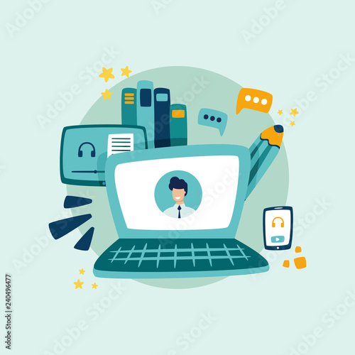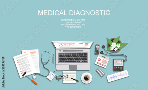 Graphic designer vector flat style design illustration. Graphics tablet, laptop, pencils, ink, ink pen. Designer workspace, equipment and tools for web banner, website page etc.