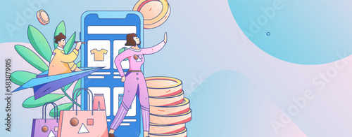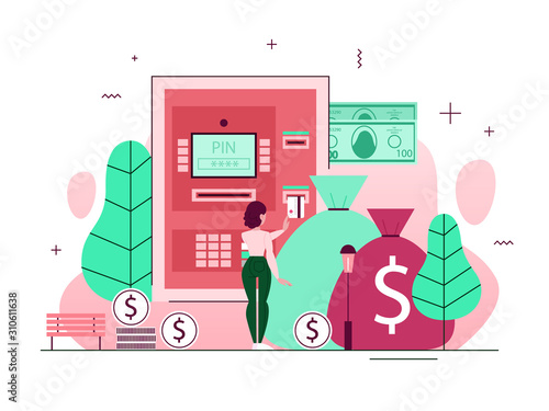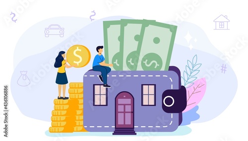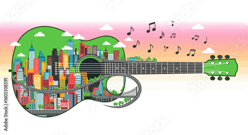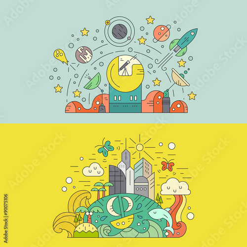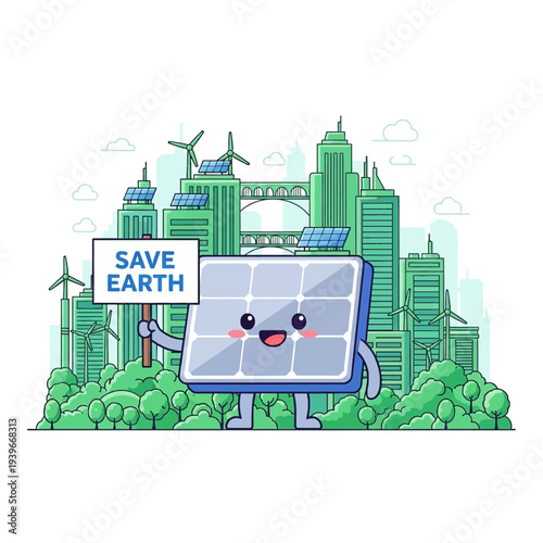 Green eco city, alternative energy sources, people taking care of planet Earth ecology, riding bike, flat vector illustration. Eco friendly lifestyle. Save energy and planet, environmental protection.