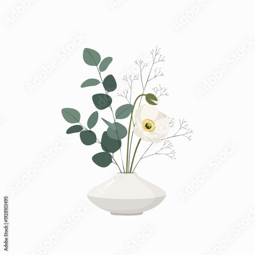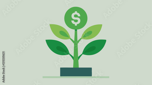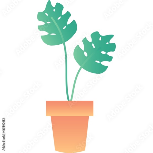 Green flower leaves in pot vector icon isolated on white background.