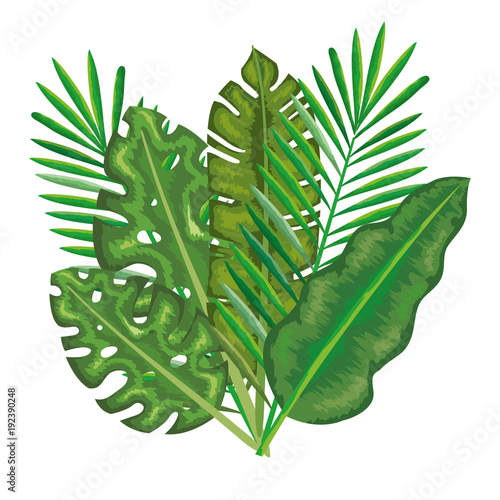Green tropical leaves vector icon isolated on white background.