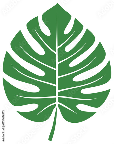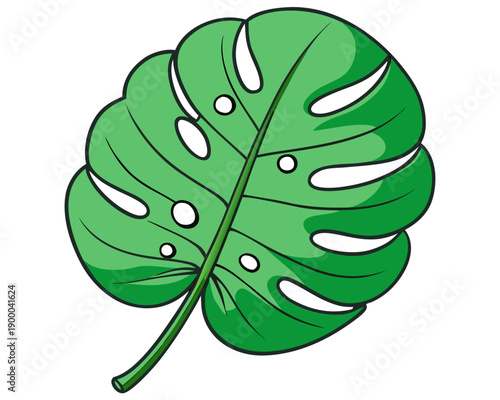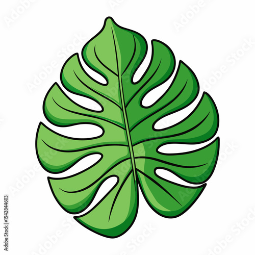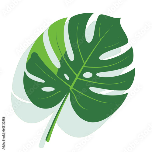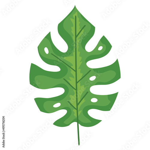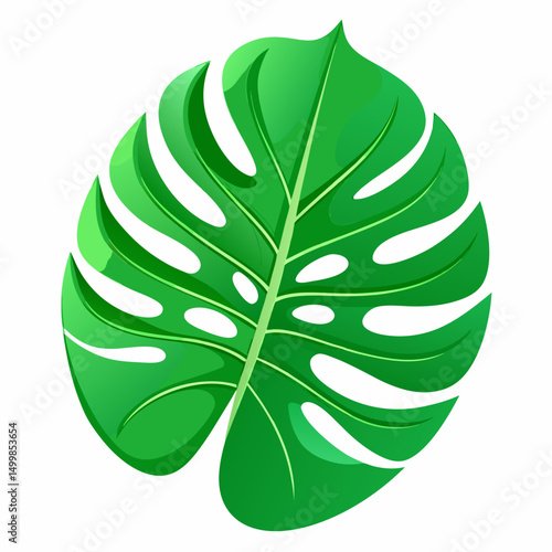 Green palm leaf vector. Tropical single tree branch isolated icon. Jungle rainforest foliage design illustration. Exotic hawaiian flora on white background. Monstera deliciosa palmetto