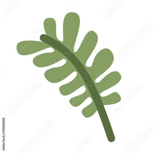 Green palm leaf vector. Tropical single tree branch isolated icon. Jungle rainforest foliage design illustration. Exotic flora on white background