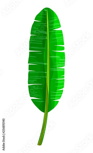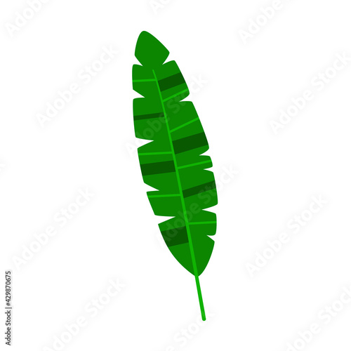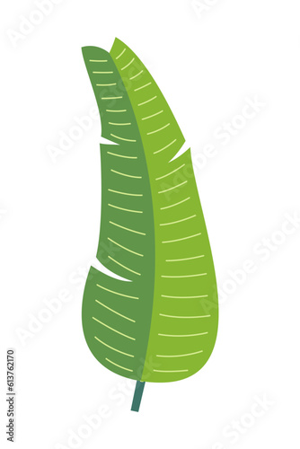 Green palm leaf vector. Tropical single banana tree branch isolated icon. Jungle rainforest foliage design illustration on white background