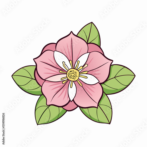 green water lily leaf and pink blooming flower vector icon isolated on white background.