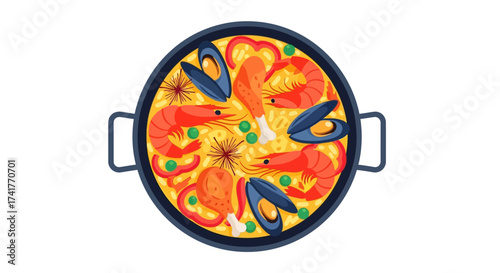 Grill pan with salmon fish steaks, lemon slices, pepper and rosemary spicy herb, vector illustration isolated on white background. Grilled seafood for restaurant, cafe menu etc.