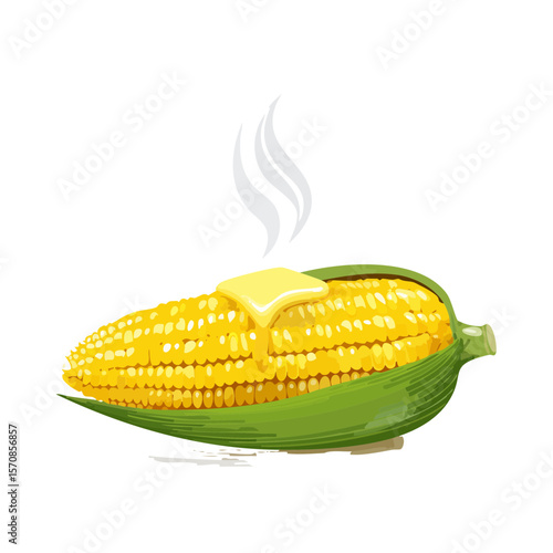 Grilled and boiled sweet corn, vector isolated illustration. Realistic corn cobs roasted on grill pan and cooked in cooking pot.