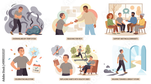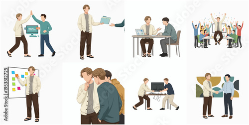 Groom preparation for wedding day isolated set. Ordering restaurant, hairdressing, sewing suit, celebrating bachelor stag-party and marriage ceremony scene vector illustration