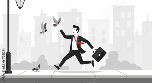 Group of businessman travel by car with stock market exchange building on background. Business concept vector illustration in cartoon style.