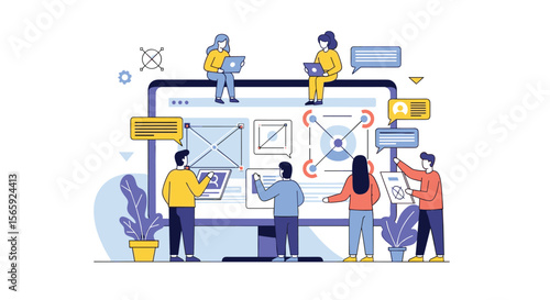 Vector illustration of men and women in white coats, hospital scrubs isolated on white background. Group of medical doctors examining their patients, paramedics providing first aid. Flat style design.