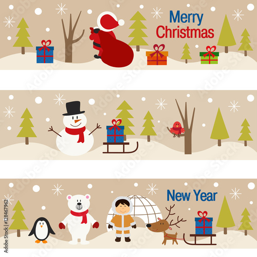 Group of people celebrating Christmas online, flat vector illustration. Online party, video conference technologies, distance meeting.