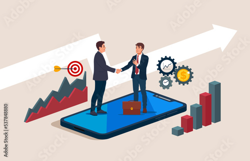 Group of people protesters, activists with banners placards and male politician behind the rostrum standing like on the seesaw, flat vector isometric illustration. Political protest strike demo crisis