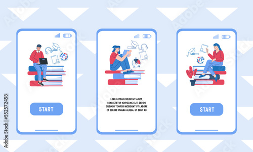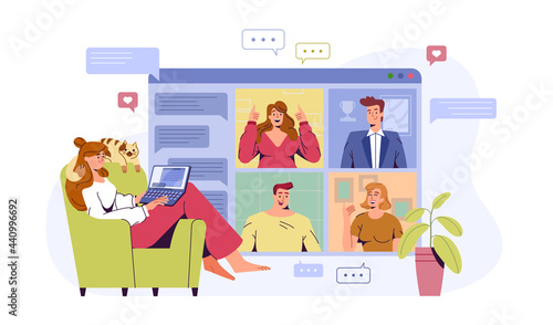 Group video call chat with friends. Video conference technology. Mobile app screens. Vector banner template for website and mobile development. Web site and UI design illustration.