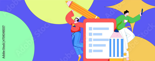 Growth agenda, to do list. Tiny people professional team identifying priority tasks to reach business goals, vector flat illustration. Work planning, aligned priorities, successful business strategy.