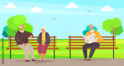 Guardian angel helping senior man with walk stick across road vector illustration. Holy keeper protecting elderly male citizen from busy city traffic, offering support and assistance