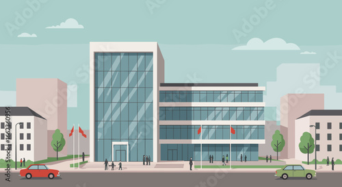 Vector illustration of beautiful fitness woman and strong athletic men exercising with dumbbells. Gym interior with exercising equipment flat style design elements.