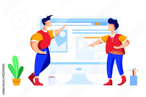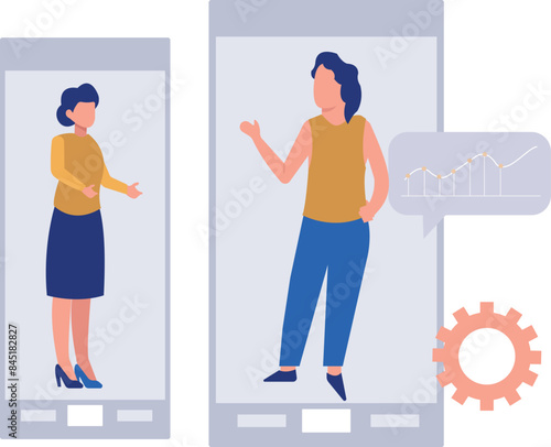 Vector illustration of fitness people or instructors male and female holding exercise poster. Gym people flat style design elements, icons isolated on white background.