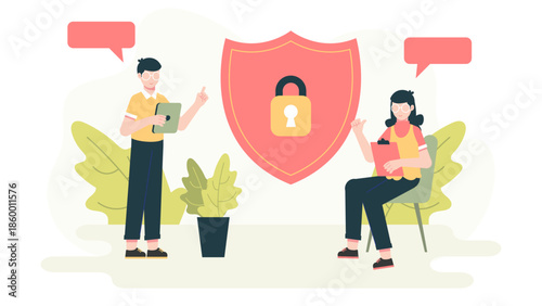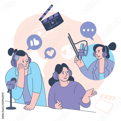 Huge woman head and micro characters hairdressers washing her hair with shampoo, vector illustration. Hairdressing salon services concept for web banner, website page etc.