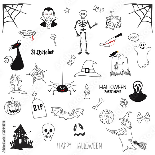 Halloween photo booth mask and accessories vector set. Party props, festive decoration collection. Mask, eyeglasses, creepy mouth, traditional pumpkin jack-o-lantern isolated on white background
