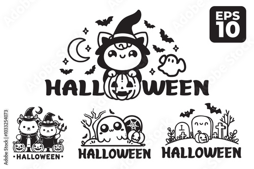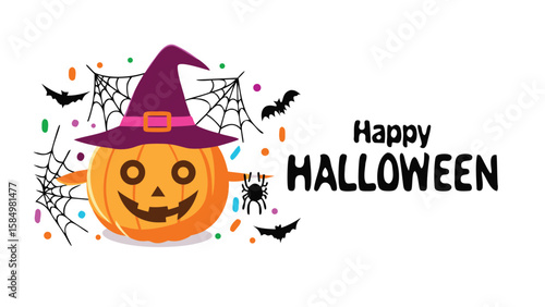 Halloween landing page template. Vector flat style design concept for Halloween website and mobile site development. Pumpkin, sugar skull mask, eyes, bats, candles, candy corns and witch hat.