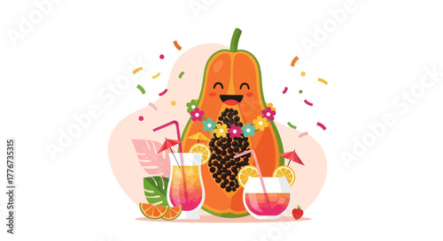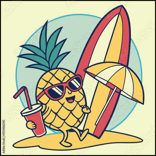 Hamster rest on beach vector. Vacation relax icon. Cute animal holding pineapple sitting on deck chair enjoy summer travel fun season holiday at seaside illustration isolated on white background