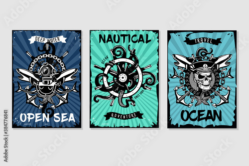 Hand drawn mulled wine vector banners set. Black and white sketch posters with wine glass. Menu cards design templates in retro vintage style