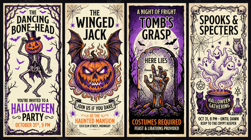 Hand drawn mulled wine vector banners set. Black and white sketch posters with wine glass. Menu cards design templates in retro vintage style