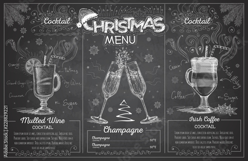 Hand drawn mulled wine vector poster. Black and white sketch with wine glass. Menu cards design templates in retro vintage style on black background.