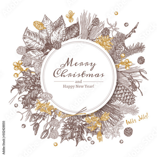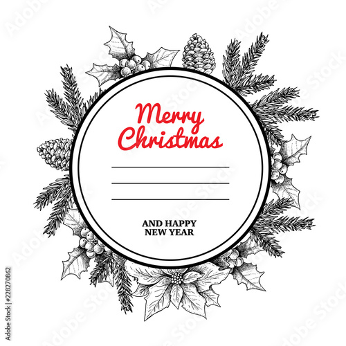 Hand drawn mulled wine vector round banner. Black and white sketch poster. Menu logo and emblem design templates in retro vintage style.