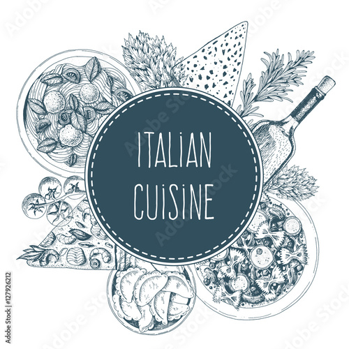 Hand drawn mulled wine vector round banner. Black and white sketch poster. Menu logo and emblem design templates in retro vintage style