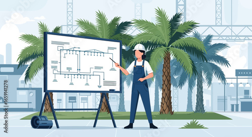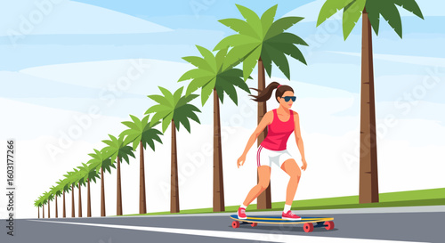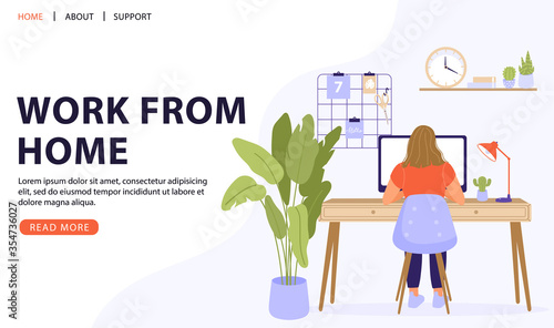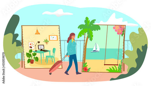 Vector illustration of young woman embroidering flowers with needle and pink thread. Satin stitch hand embroidery for clothing. Atelier, tailoring shop concept design element in flat style.