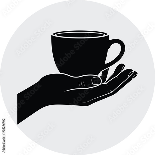 Hand with aroma espresso vector icon isolated on white background