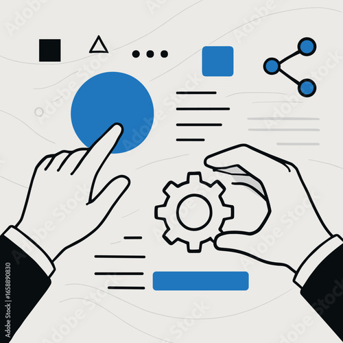 Hands hold digital tablet vector illustration. Person using multimedia application for watching video tutorial or webinar online. Mobile device for communication, rest and study