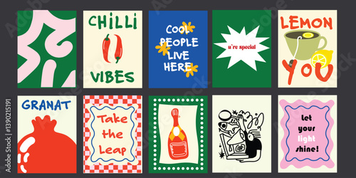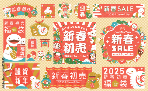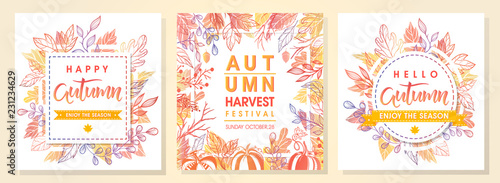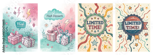 Happy birthday greeting card square templates with lovely festive design decorated cake and sweets, balloons, wrapped surprise gift boxes set. Typography congratulation postcard vector illustration
