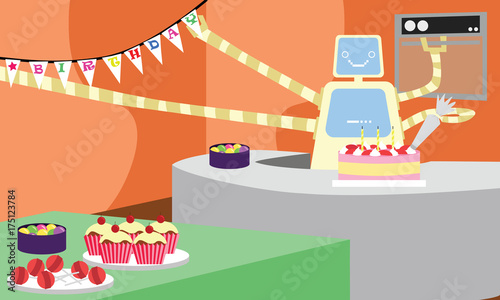 Happy birthday landing page design, website banner template set, flat vector illustration. Happy multicultural lesbian couple celebrating kid birthday. Lgbt family relationship, parenting.