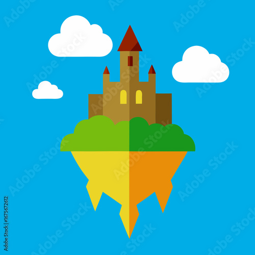 Happy birthday poster template, vector illustration in paper art style. Paper cut birthday cake with candles, balloons, gift boxes and doves.