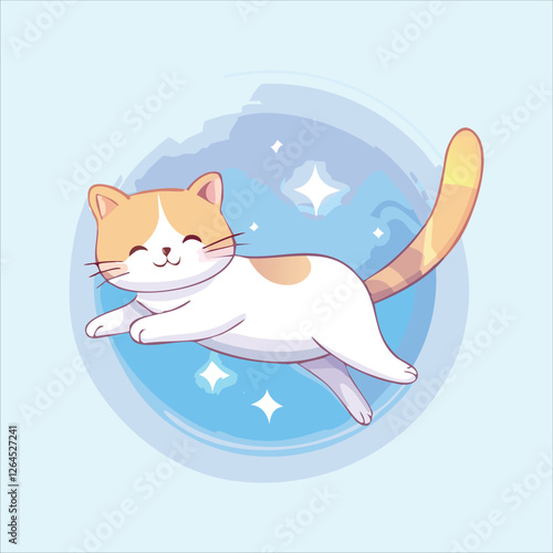 Cat vector illustration. Cartoon happy cute sleep animal character icon. flat sleepy kitten. Tired funny napping kawaii lazy pet isolated on white background