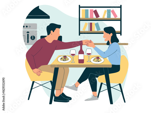 Happy children, boy and girl making smart robot, flat vector illustration. Robotics school, kid engineering club, robotic class.